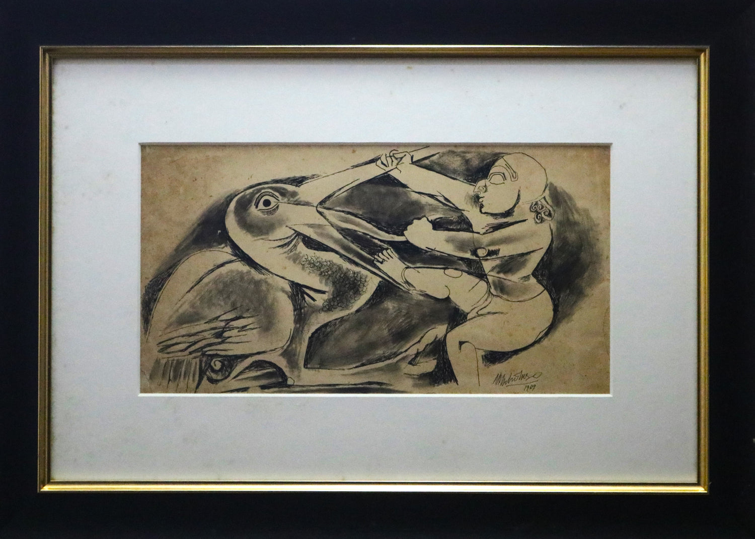 Laxman called himself his own guru, creating a highly individual vocabulary, which was accentuated during his ten-year stay in Paris. Influenced by the works of Paul Klee, Mark Chagall, and Joan Miró, Pai created an eclectic intermingling of the traditional and the modern in his work.