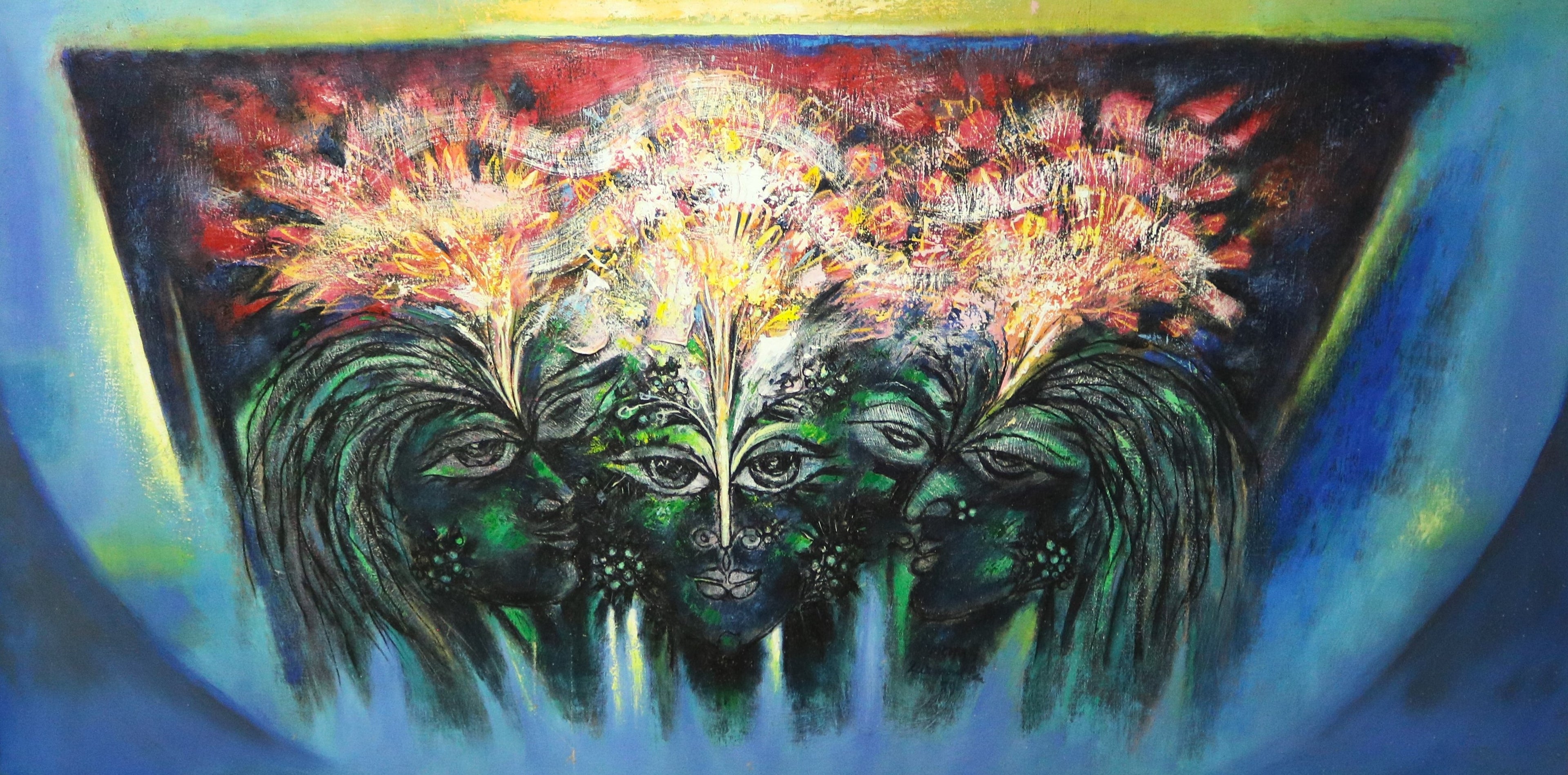 Alphonso Arul Doss was born in 1939 in Bangalore. The artist’s oeuvre explores and redefines the history and idiom of religious and classical painting, inspired by temples, churches, palaces, museums and artists across the world.
