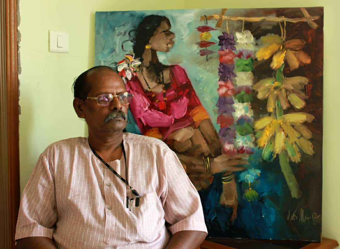 Alphonso Arul Doss was born in 1939 in Bangalore. The artist’s oeuvre explores and redefines the history and idiom of religious and classical painting, inspired by temples, churches, palaces, museums and artists across the world.