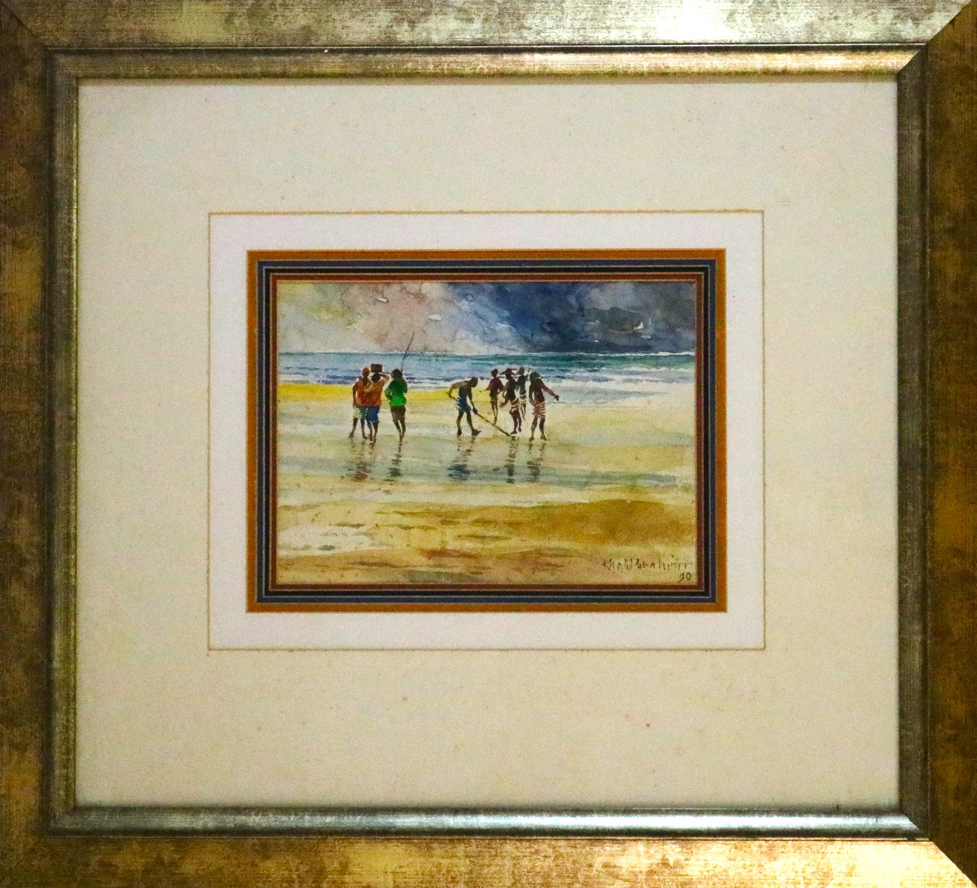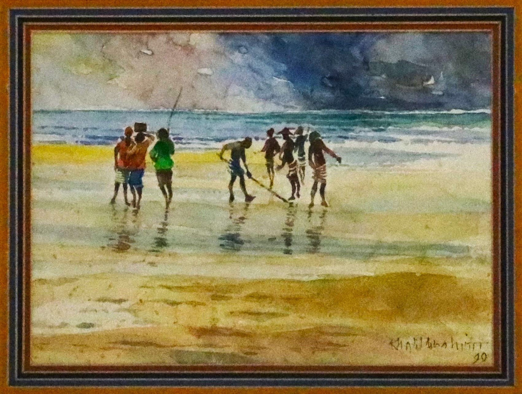 Khalil brings to life the vast sandy beaches along the coastline. It is a highly nuanced painting that evokes the feelings and spirit of communal life, reflecting the wisdom and resilience of the fishermen of the east coast.
