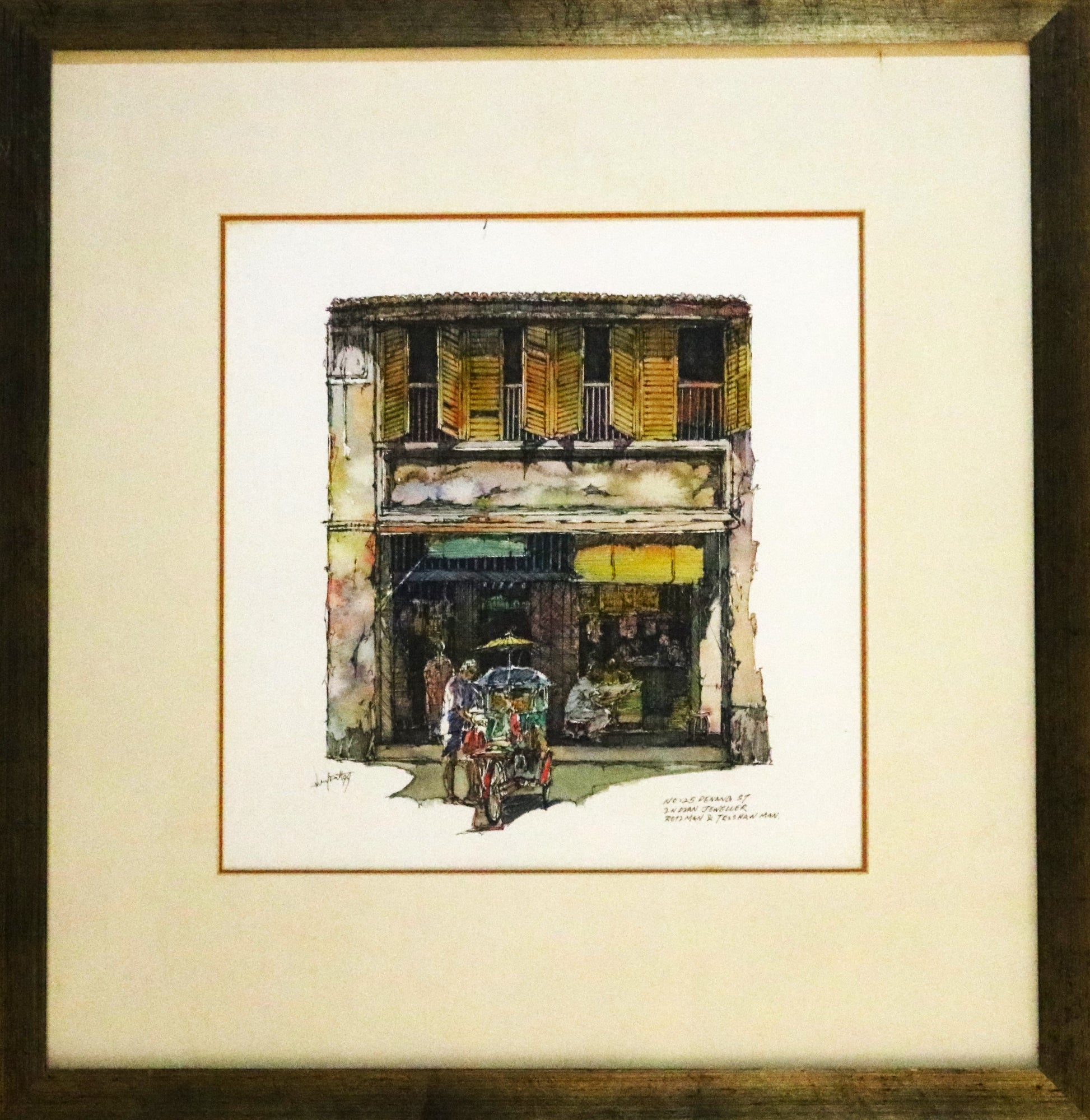 Lee weng fatt , affection for old buildings and facades has always been a subject in most of his works. Each tells a different story of its own as if they speak to him privately and allow him to bring out the best in them. The artist often makes them admirable and pleasing to see even though the work is as simple as an open window