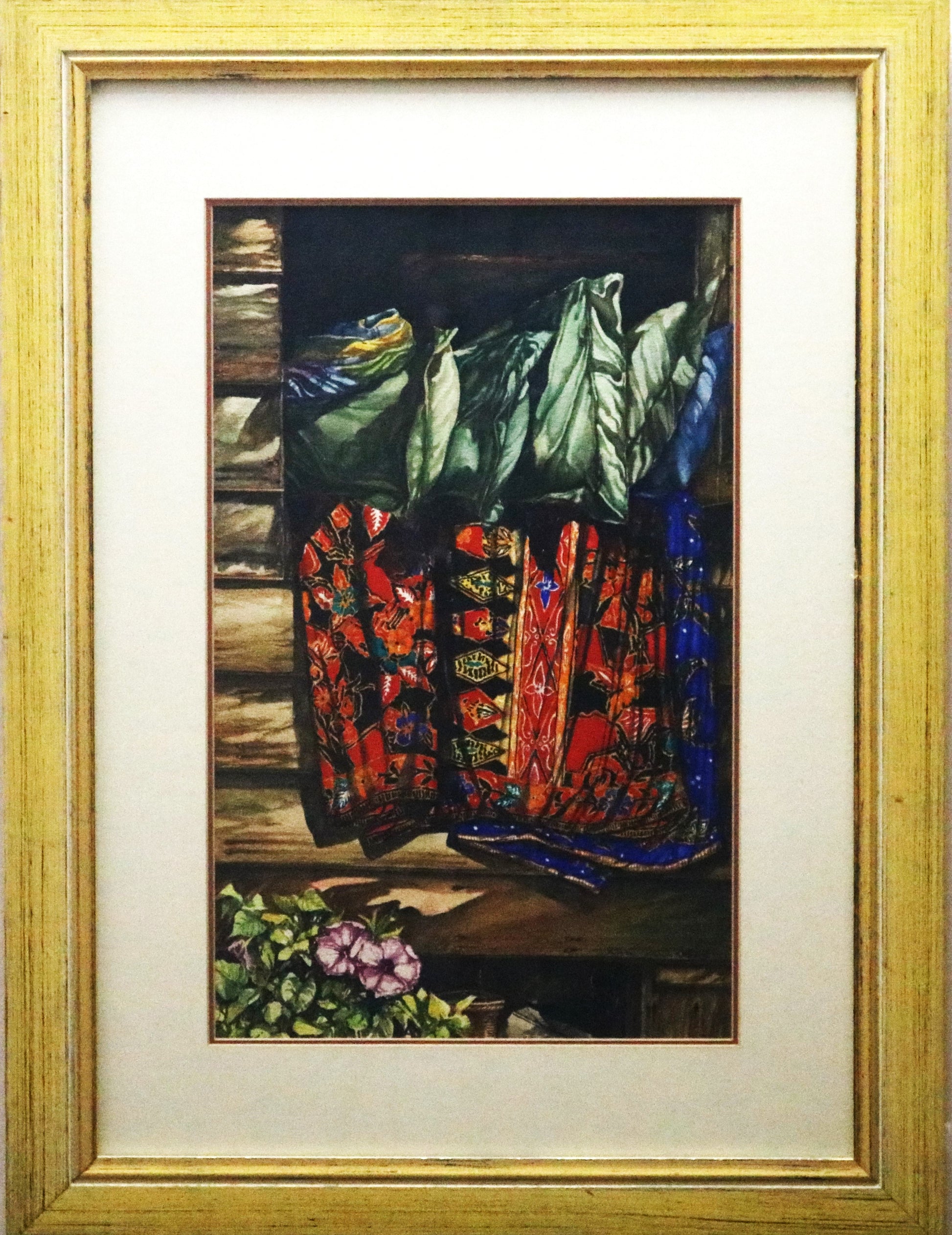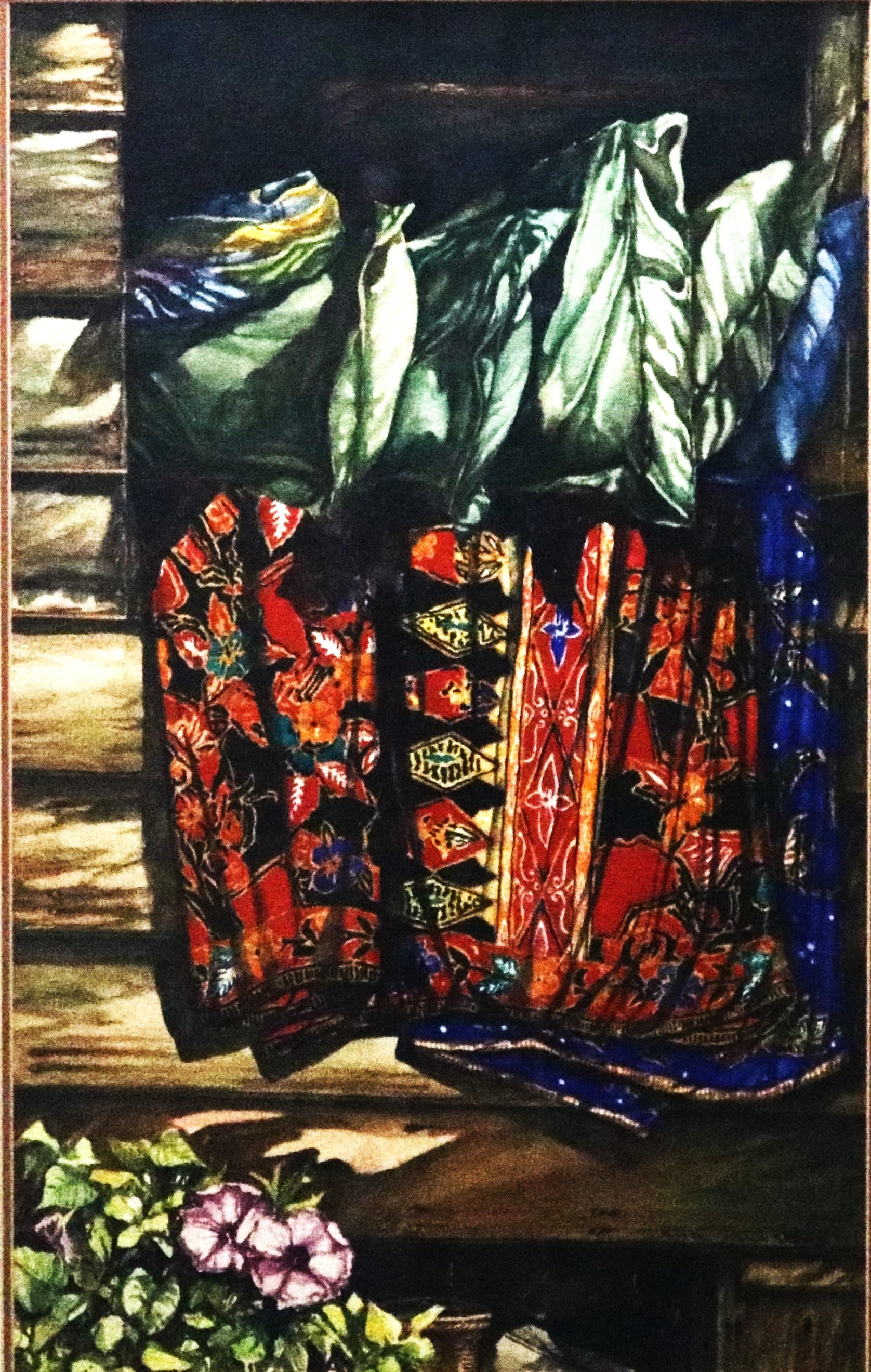 He like to use watercolour, oil, or acrylic paint on paper or canvas to illustrate his drawings. His signature and favourite subject to illustrate was "Batik." One of the most difficult aspects of his artwork is the fabric intricacies, shadows of the faults, and the vibrant colour of the silk.