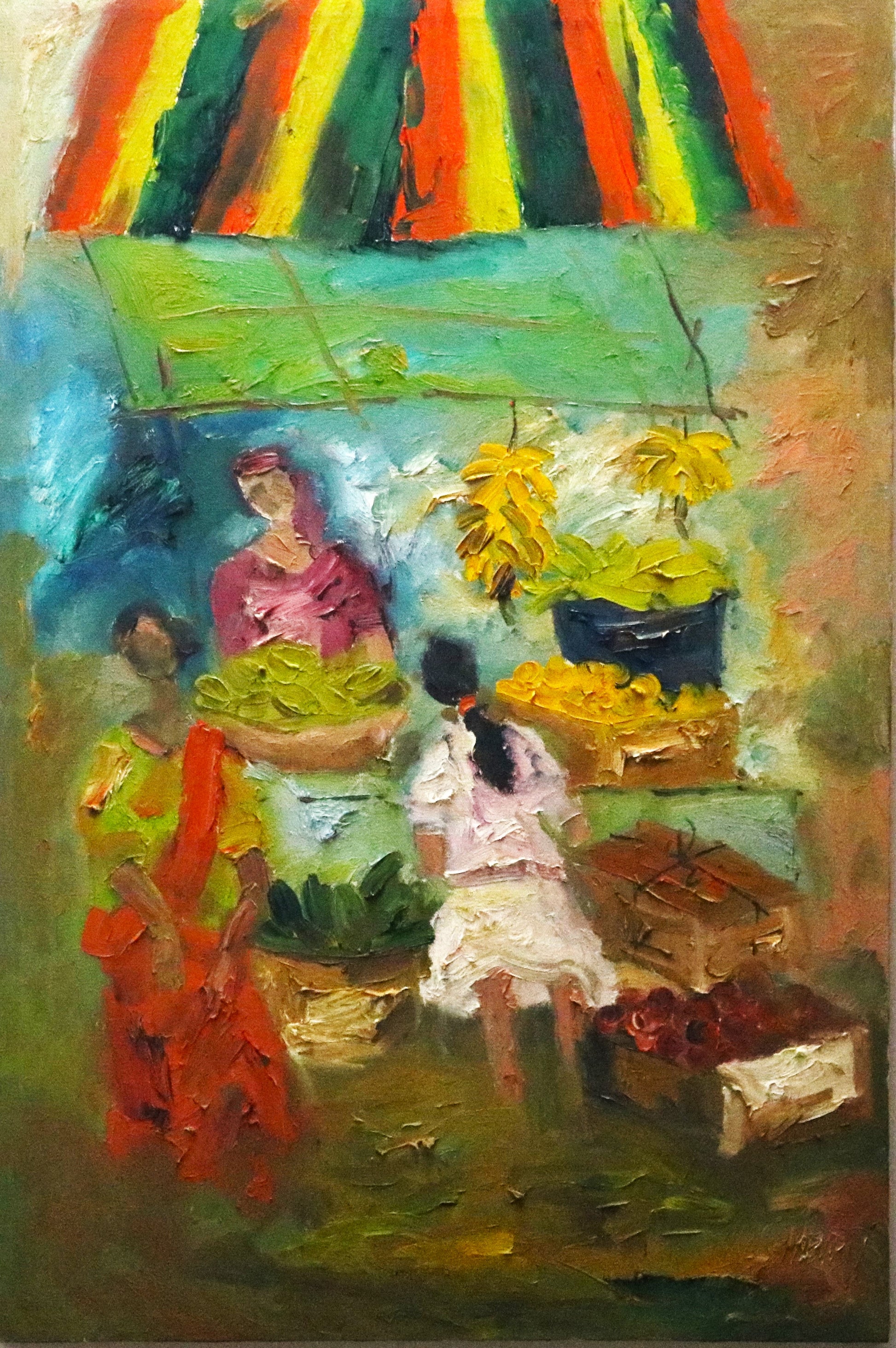 The Badami Series, which was inspired by Hadapad's birthplace of Badami, is unquestionably JMS Mani's most well-known body of work. Mani has a lifelong obsession with the picturesque landscapes and people of Badami, and he has produced numerous oil paintings depicting the regular men and women of Badami going about their daily lives.