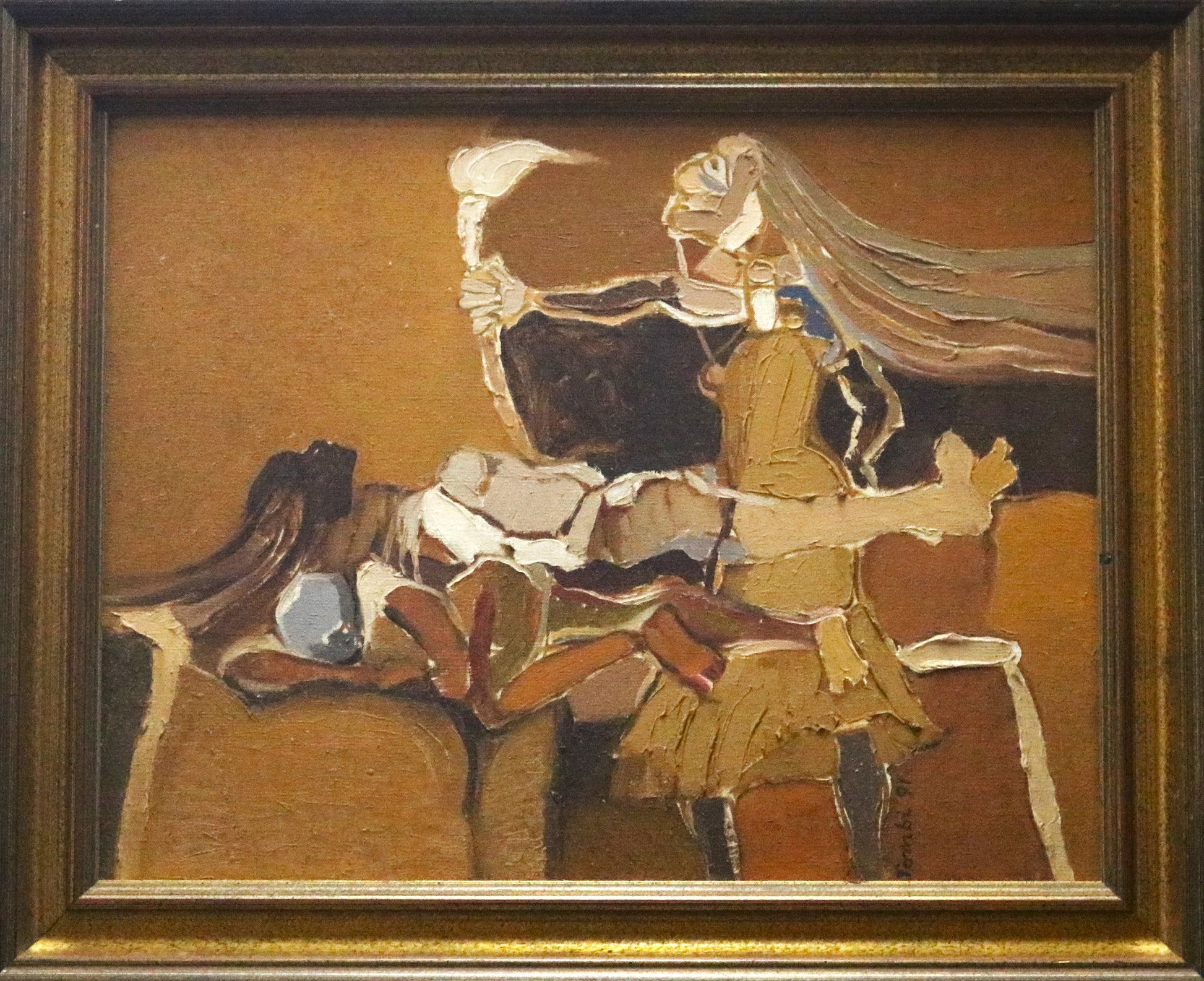 Th. Tombi Singh is the only member of the five brothers and three sisters who is committed to the arts; his three brothers are police officials. The person older than him is both a writer and an advocate for education. Of course, his father preferred that he be more sincere in his general education. He didn't interfere too much with his son's passion in painting, though.