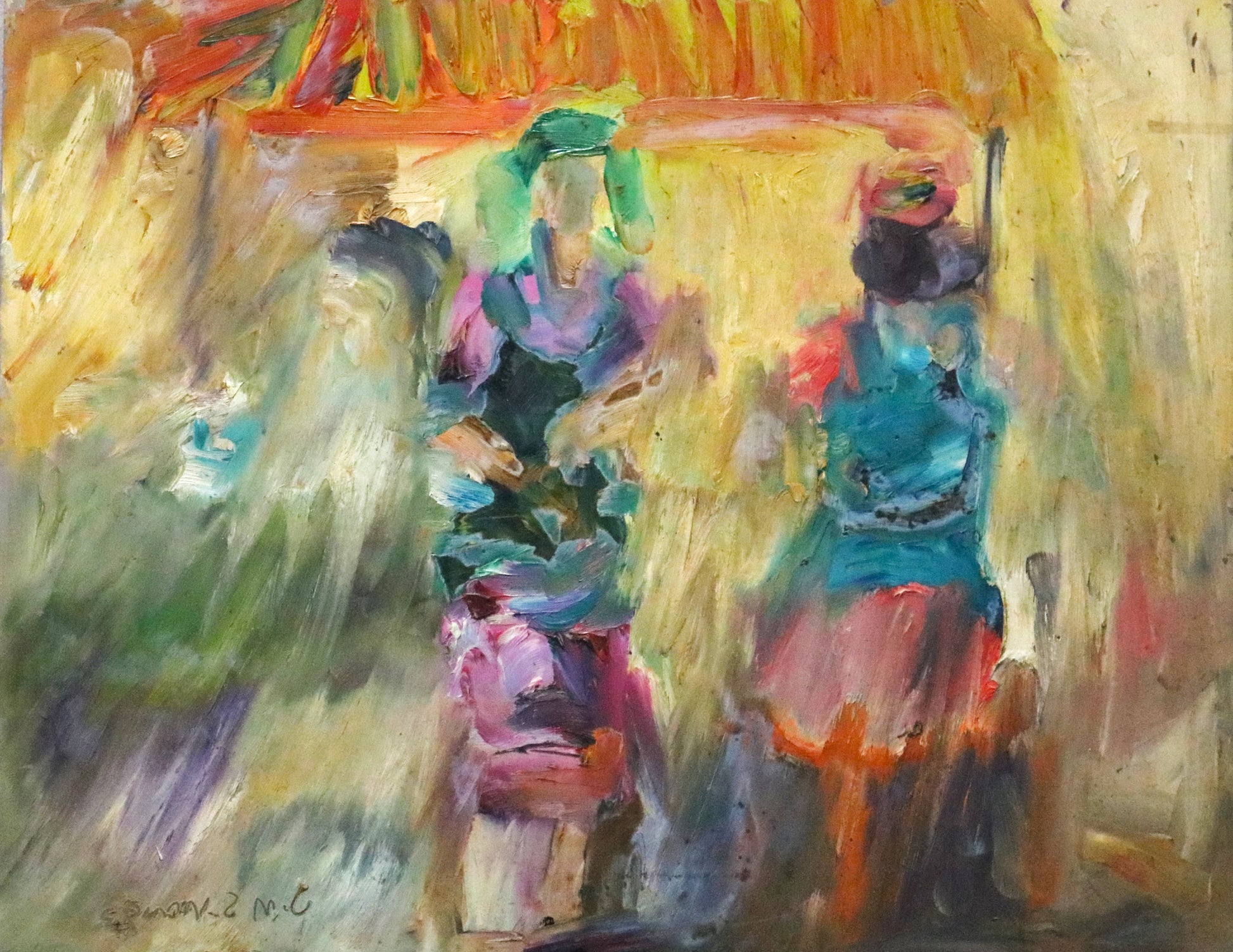 The Badami Series, which was inspired by Hadapad's birthplace of Badami, is unquestionably JMS Mani's most well-known body of work. Mani has a lifelong obsession with the picturesque landscapes and people of Badami, and he has produced numerous oil paintings depicting the regular men and women of Badami going about their daily lives.