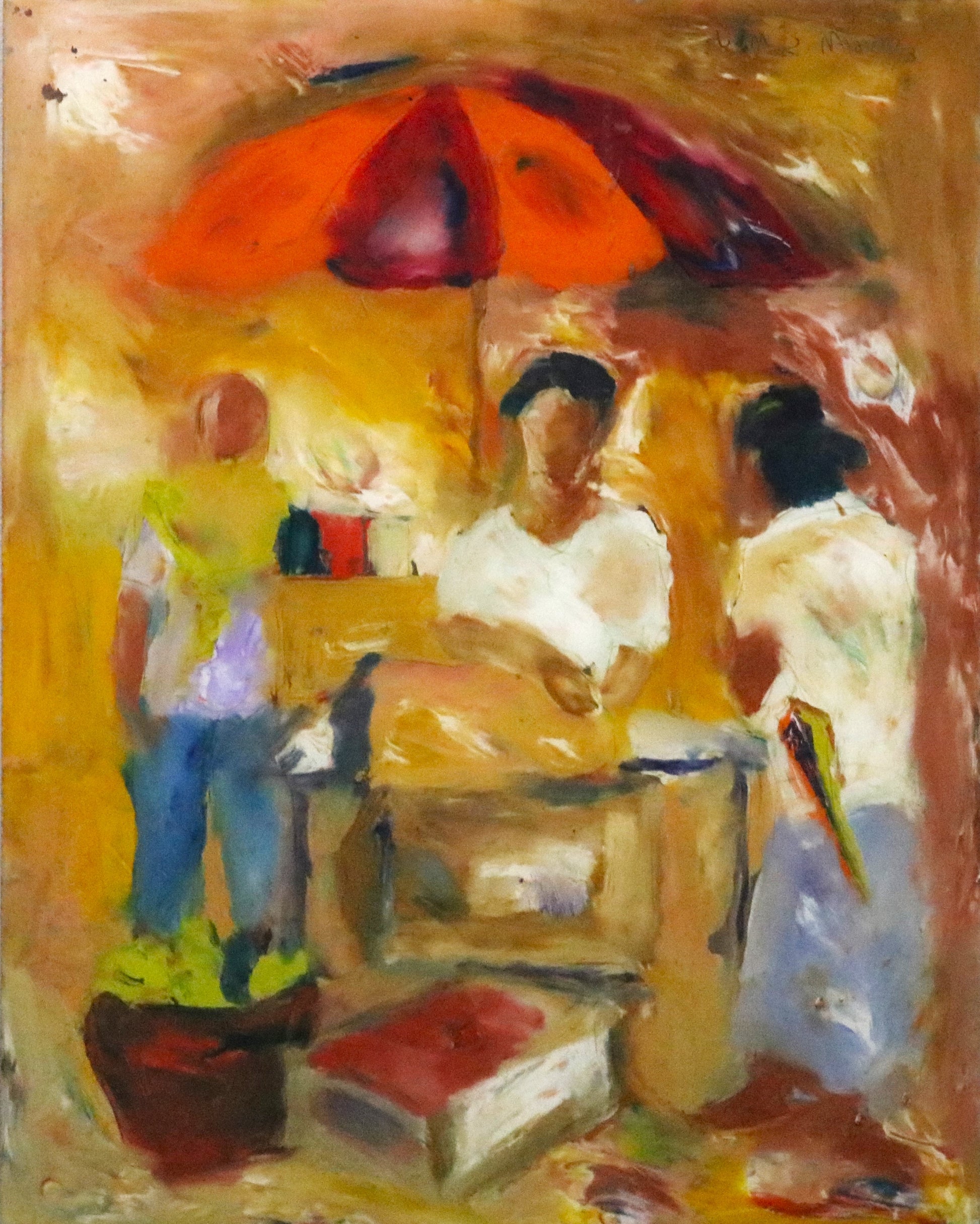 The Badami Series, which was inspired by Hadapad's birthplace of Badami, is unquestionably JMS Mani's most well-known body of work. Mani has a lifelong obsession with the picturesque landscapes and people of Badami, and he has produced numerous oil paintings depicting the regular men and women of Badami going about their daily lives.