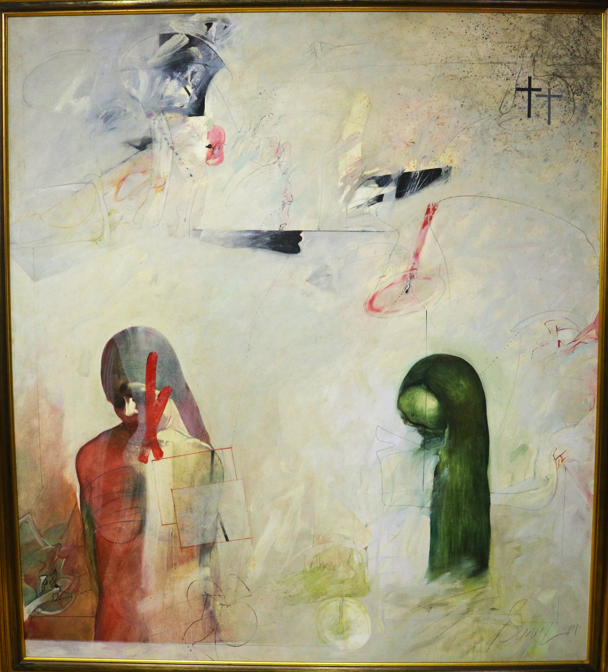 The associative qualities of Sunil Das's subjects are also conveyed in his paintings in addition to their physical characteristics.He occasionally paints people, but his interpretation of the human form is so distorted that it almost veers into ghastly surrealism. For instance, his oil on canvas series of ladies with enigmatic, seductive eyes conveys the constraints that women face in a variety of ways, including the erotic.