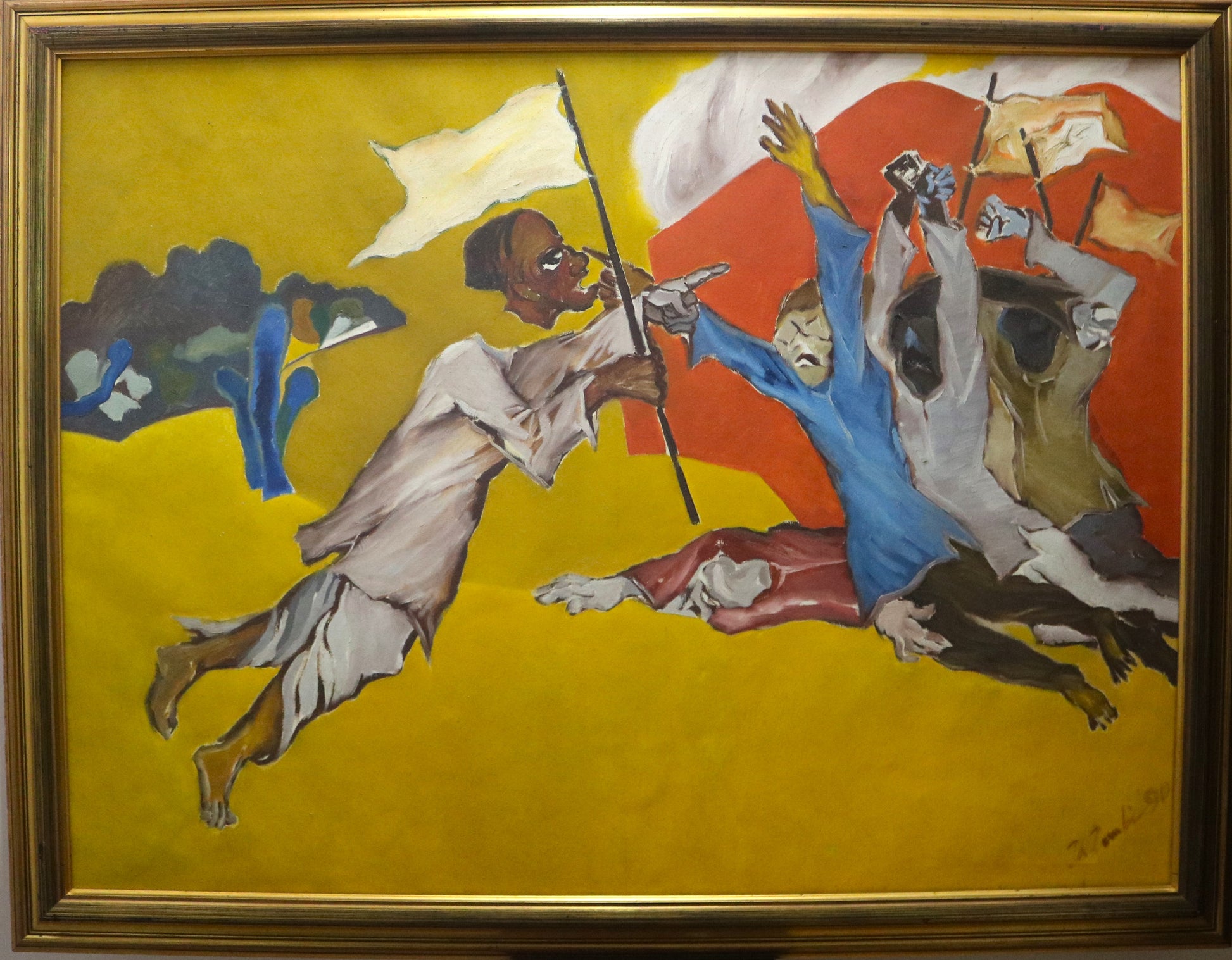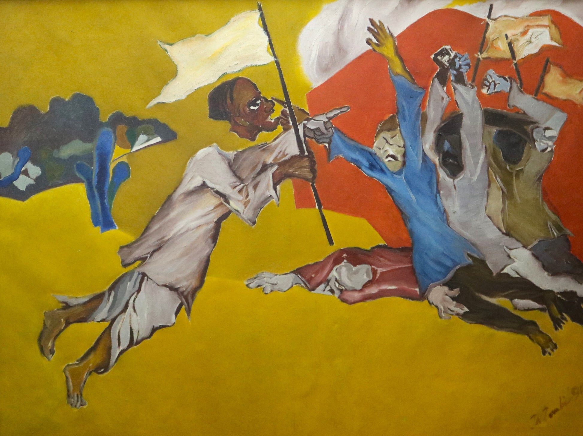 Th. Tombi Singh is the only member of the five brothers and three sisters who is committed to the arts; his three brothers are police officials. The person older than him is both a writer and an advocate for education. Of course, his father preferred that he be more sincere in his general education. He didn't interfere too much with his son's passion in painting, though.